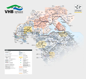 For Journeys from the OSTWIND fare network to the Hegau-Bodensee transport network (VHB) are single tickets as well as monthly and annual travelcards available. All zones in the OSTWIND fare network (OTV) and all zones of the Hegau-Bodensee transport network (VHB) can be purchased in combination.
